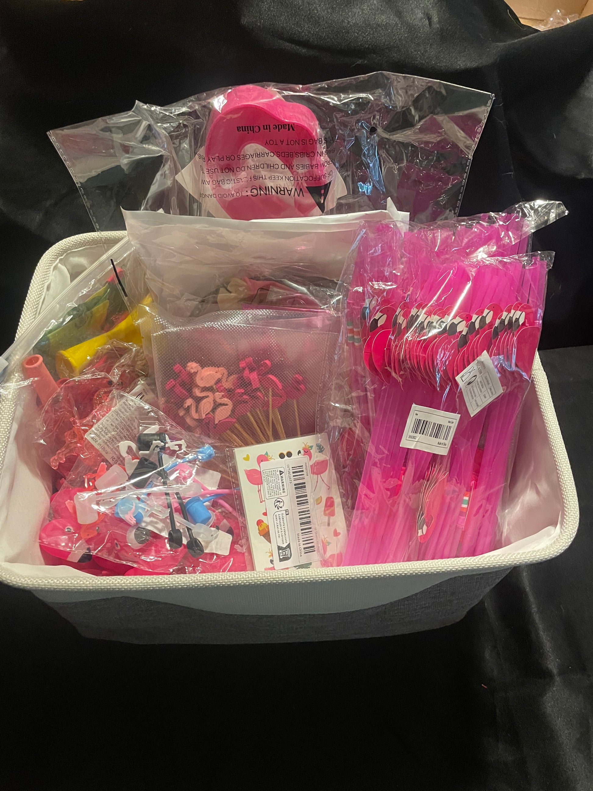 Get ready for a splashin' good time with our Flamingo Summer Pool Party basket. Filled with all the essentials for a perfect summer day - cup holder floaties, flamingo straws, toothpicks, and flower lei's. Bring the fun to your next pool party and make a splash!